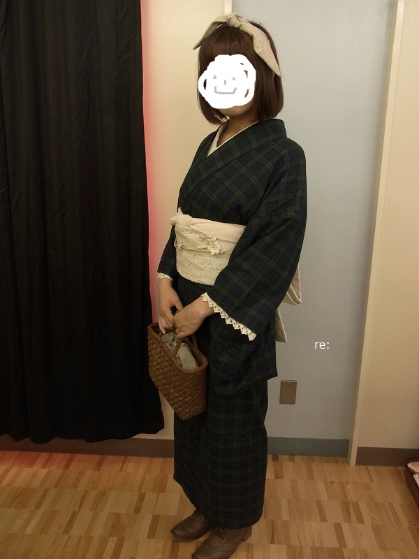 左はタータンチェックの着物。
